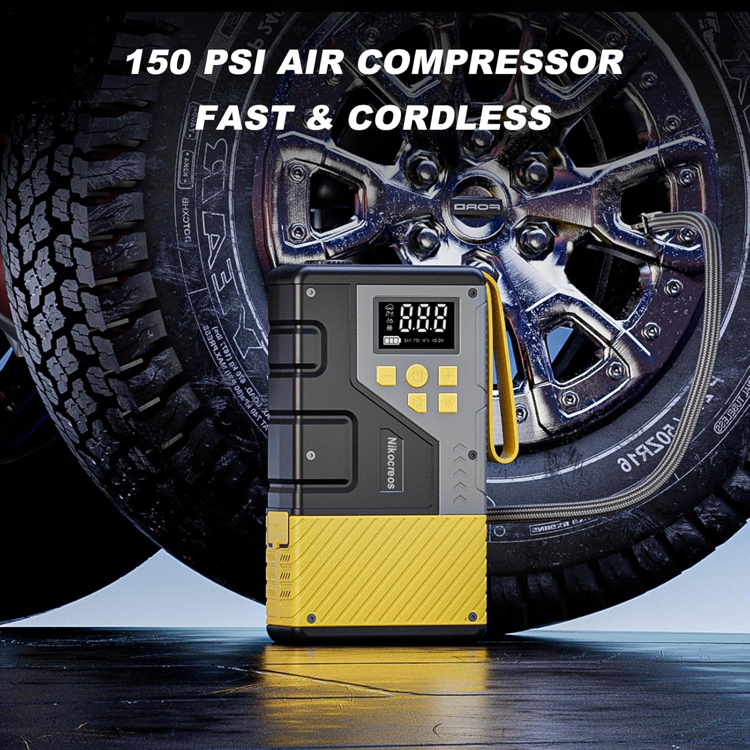 | Portable Car Jump Starter (ASIN B0FS1ZFWKL) | 3000A | 150 PSI | 12,000mAh | 12L gas / 10L diesel | (see product page) | SEK0.00 | (rating placeholder) |